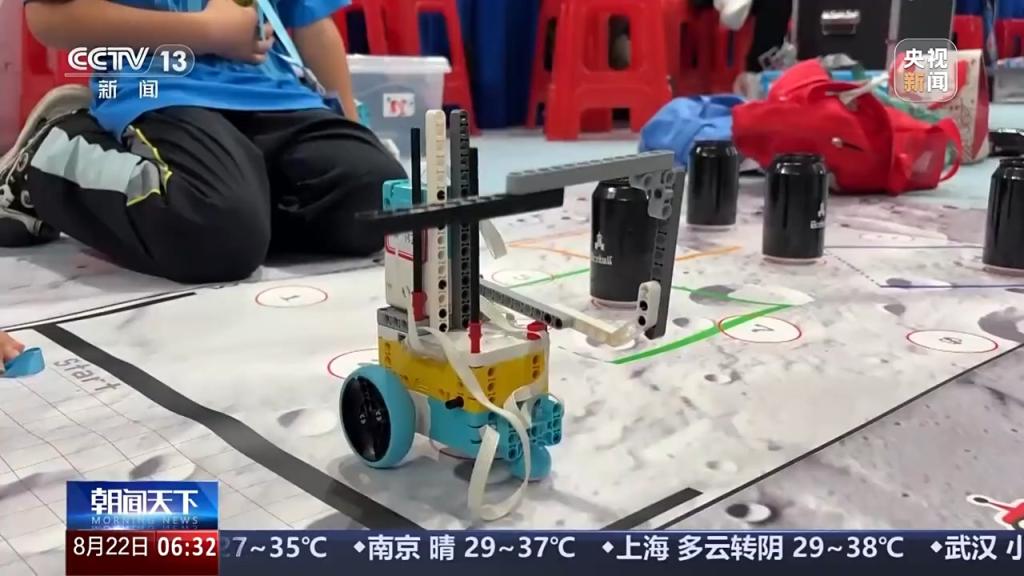 Botball国际教育机器人大会亚洲区组委会主席 毛勇:这个任务是以月球为场景,场地里面有两名受困的宇航员,机器人要把基地里面的补给物资,包括氧气、食品装备,送给受困的宇航员。还要成功把宇航员带回基地救助。